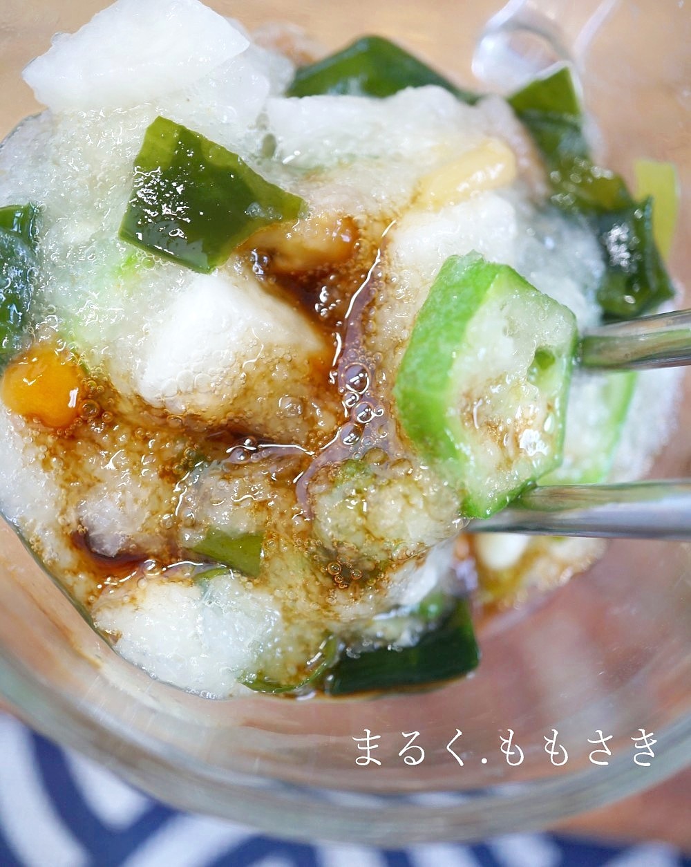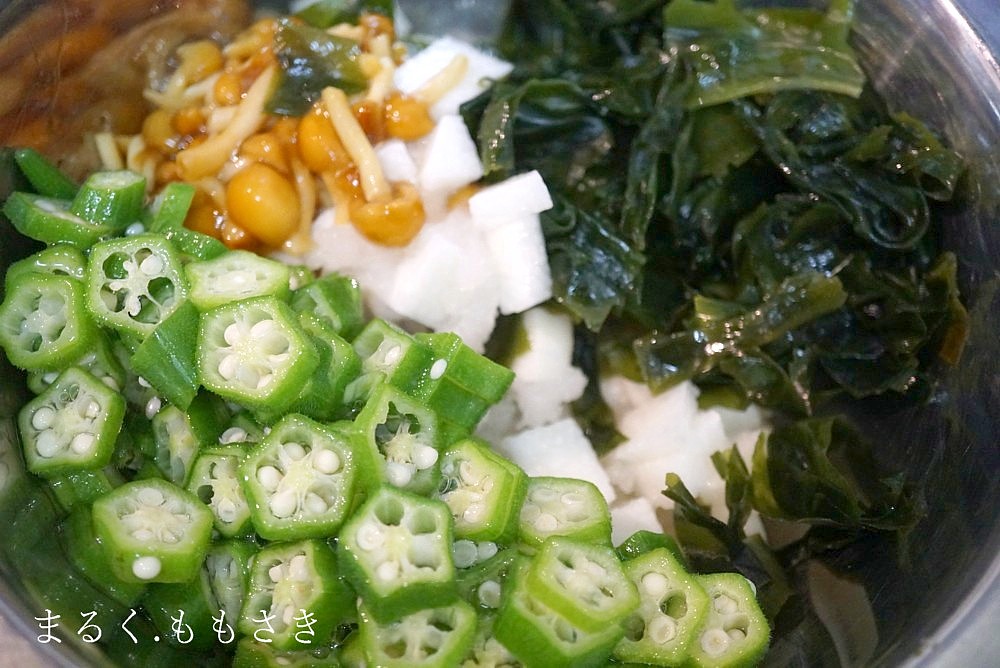 先日東京に行った時にコンビニのサラダを食べたらネバネバサラダに大根おろしが入っていたので、面白い!と自分のネバネバサラダにも入れました^^