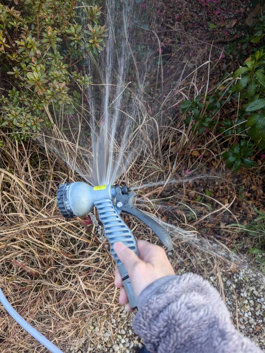 これ、夕方実家の庭の水やりの時ホースが壊れてたのか?いきなり水が全面に噴き出た!!