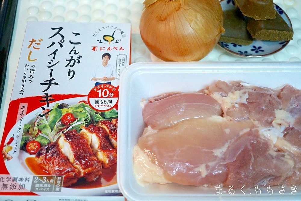 使うのは、にんべん様のだしとスパイスの魔法の『こんがりスパイシーチキン』を使ってアレンジレシピにしました