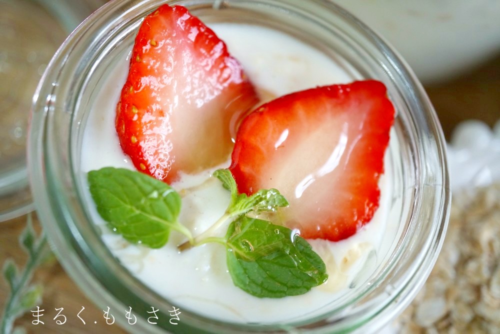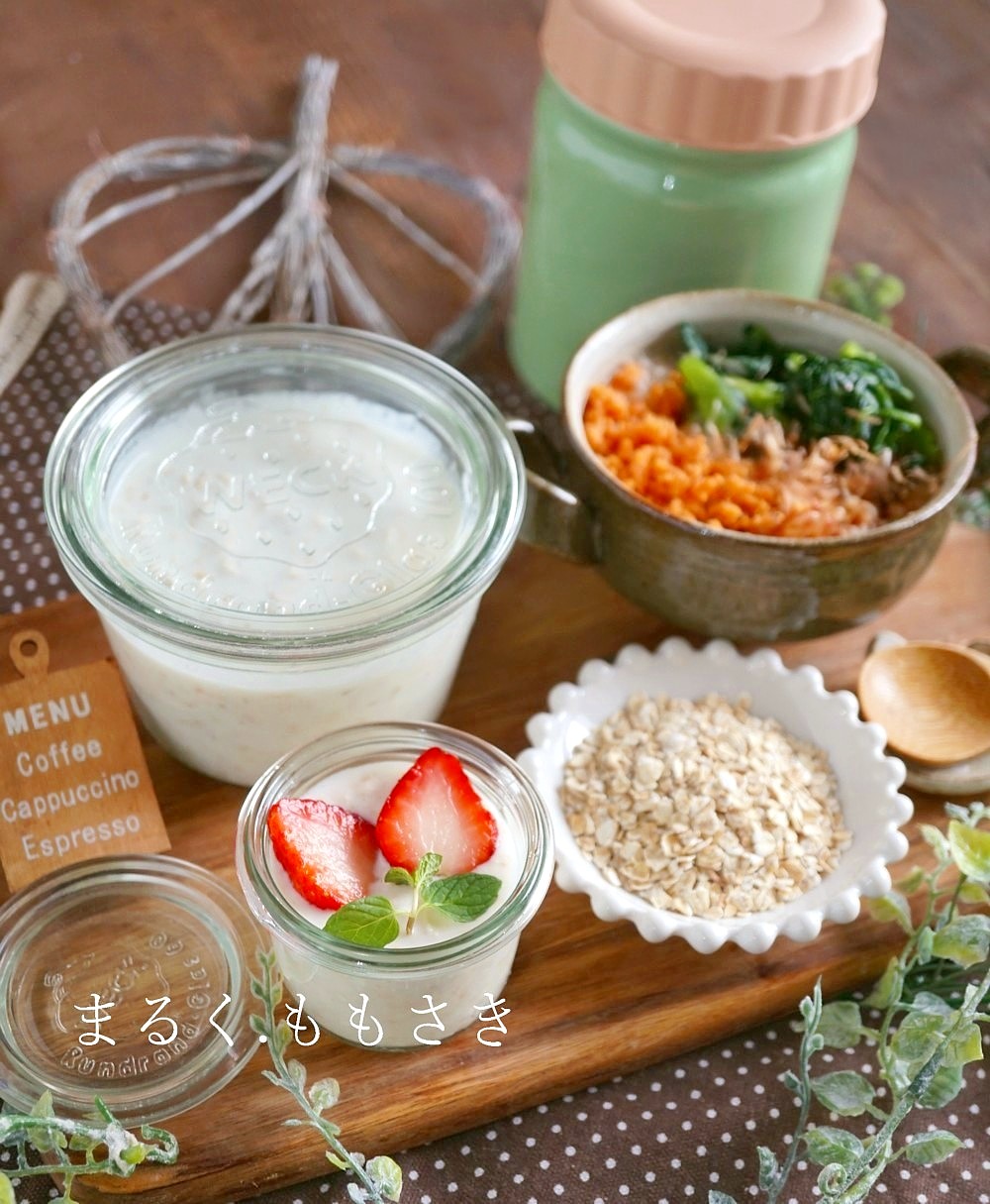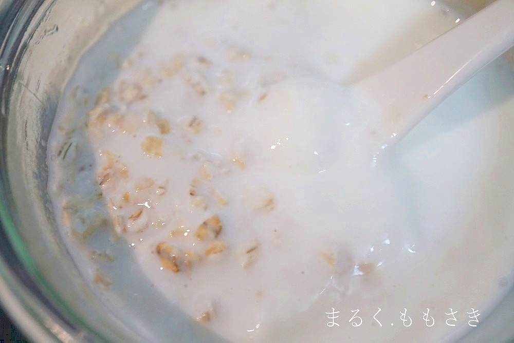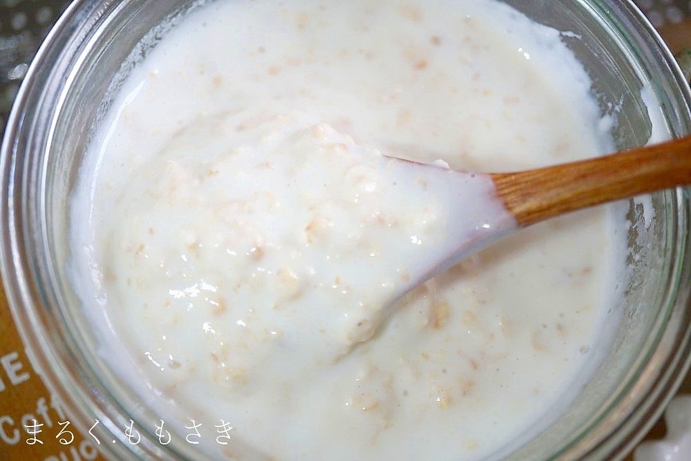 このオーバーナイトオーツとはオートミールと牛乳やヨーグルトを合わせ1晩(8時間ほど)置いたもので寝る前に仕込み朝に食べるものです。
