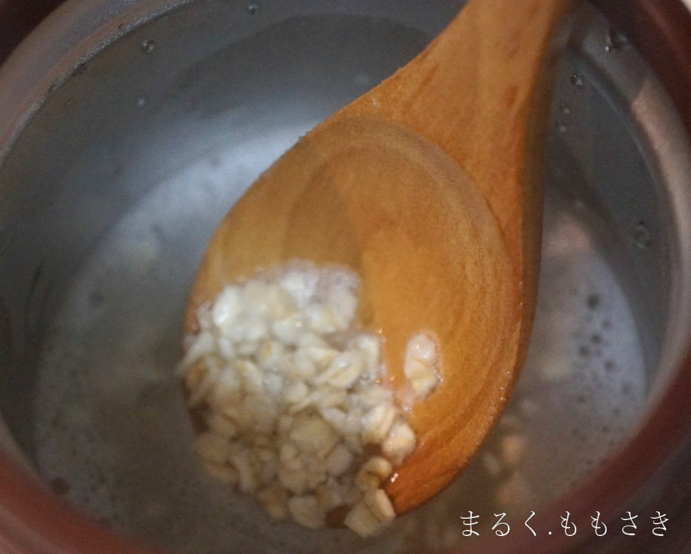よくある作り方では器にオートミール30gと水を入れラップ無しでチンするんですが、吹きこぼれやすいそうで、