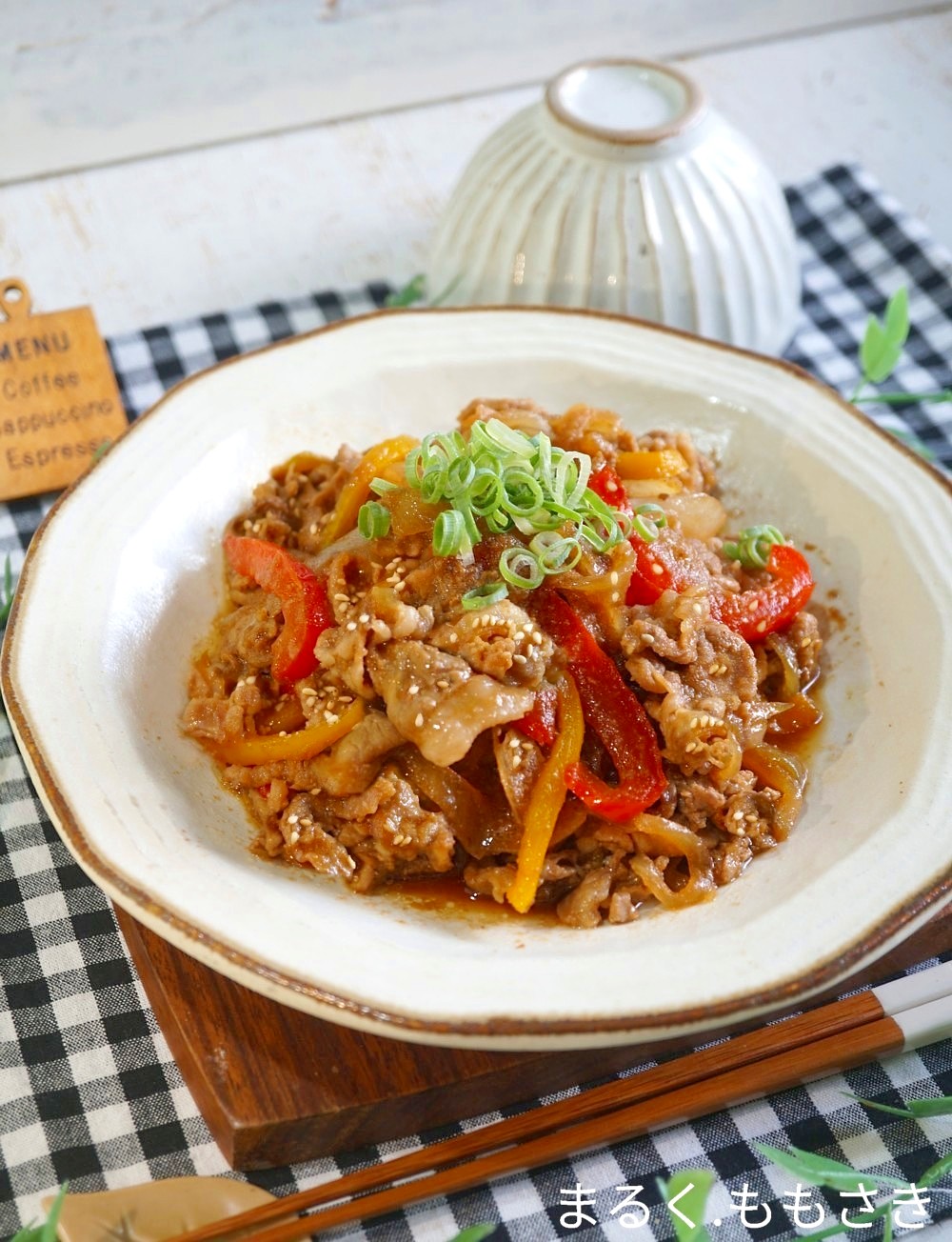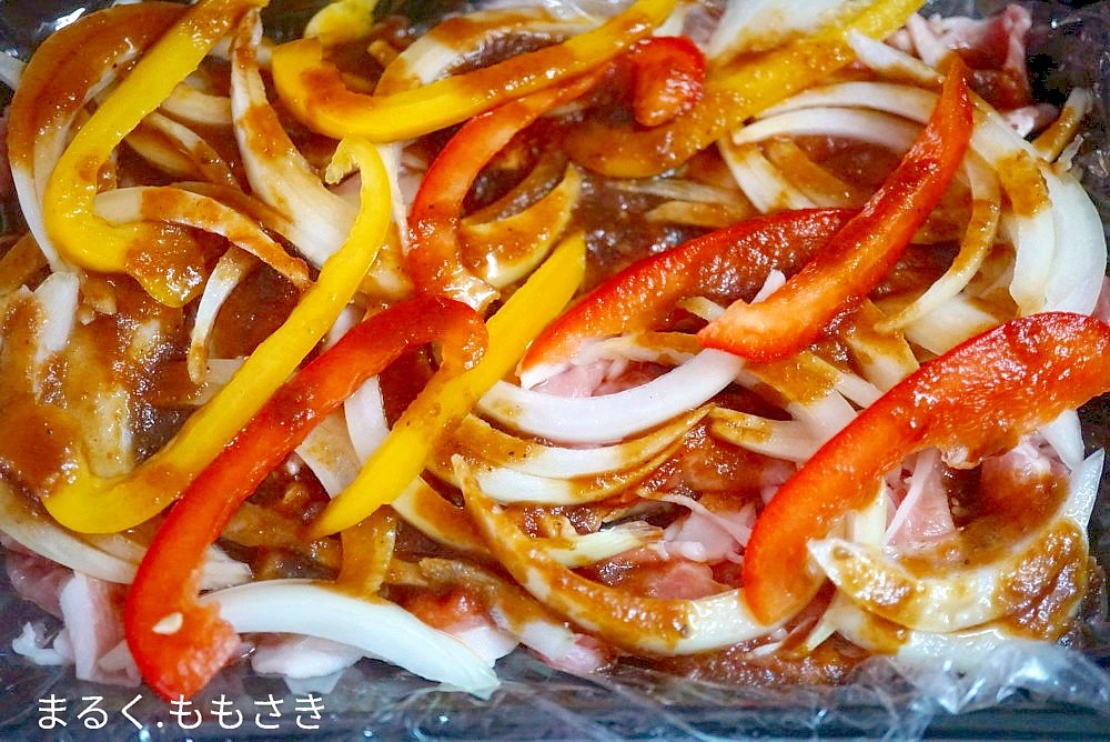 玉ねぎとパプリカを一緒に2~3時間ほど漬け込み焼くだけです。