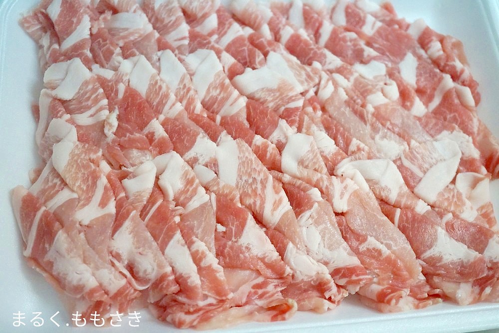 お好みの豚肉の部位でいいと思いますが、私はいつも数分先のドラッグストアに改装後からお肉屋さんが入り、このタイプが柔らかくて好き。100g118円で脂身と赤味の比率も好みです。