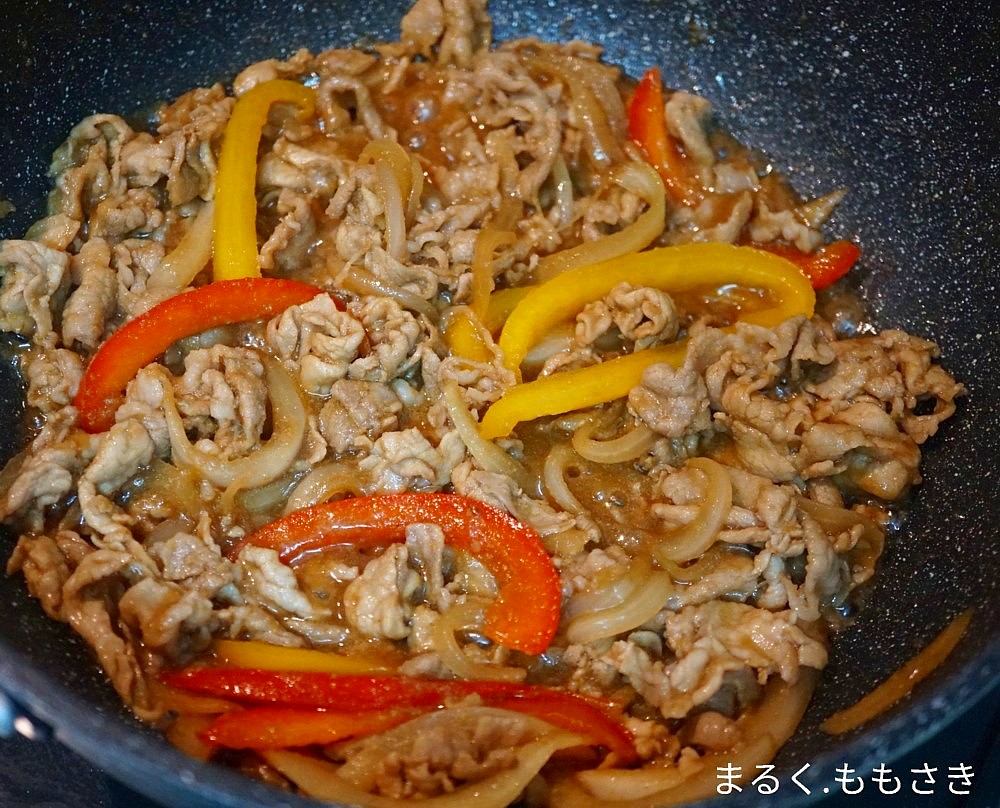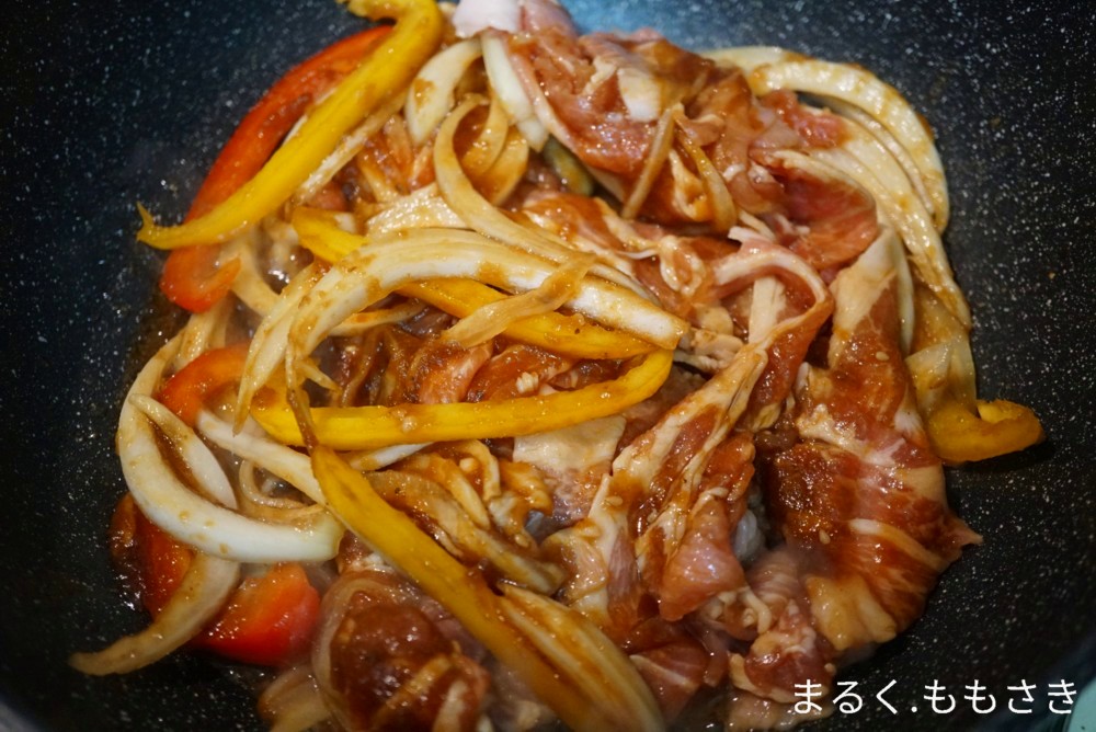 2パック買って作る時に、パックの中に豚肉を広げ上に野菜を乗せ焼き肉のたれなどを入れラップで覆い、冷蔵庫で保存した後焼いたのと、