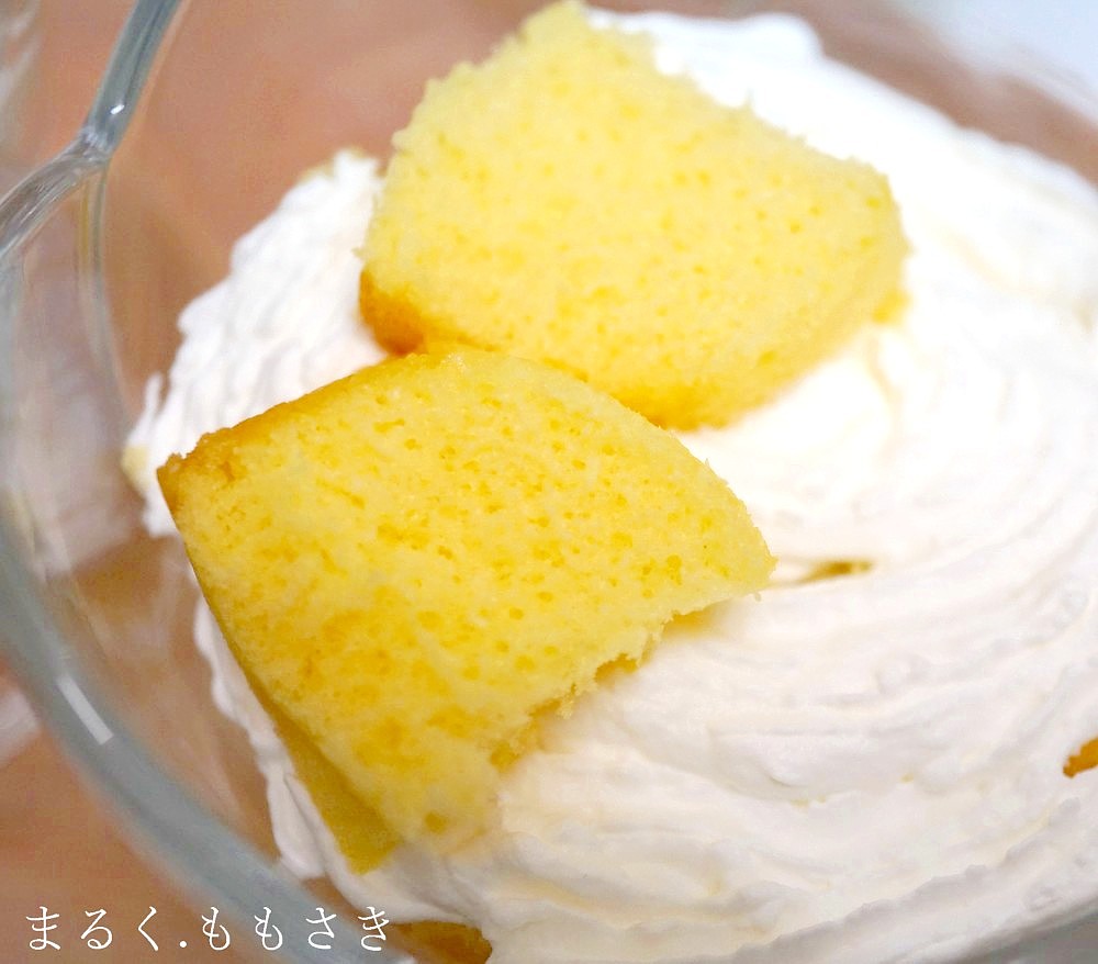 もう1度生クリームを搾り、シフォンケーキを乗せる。