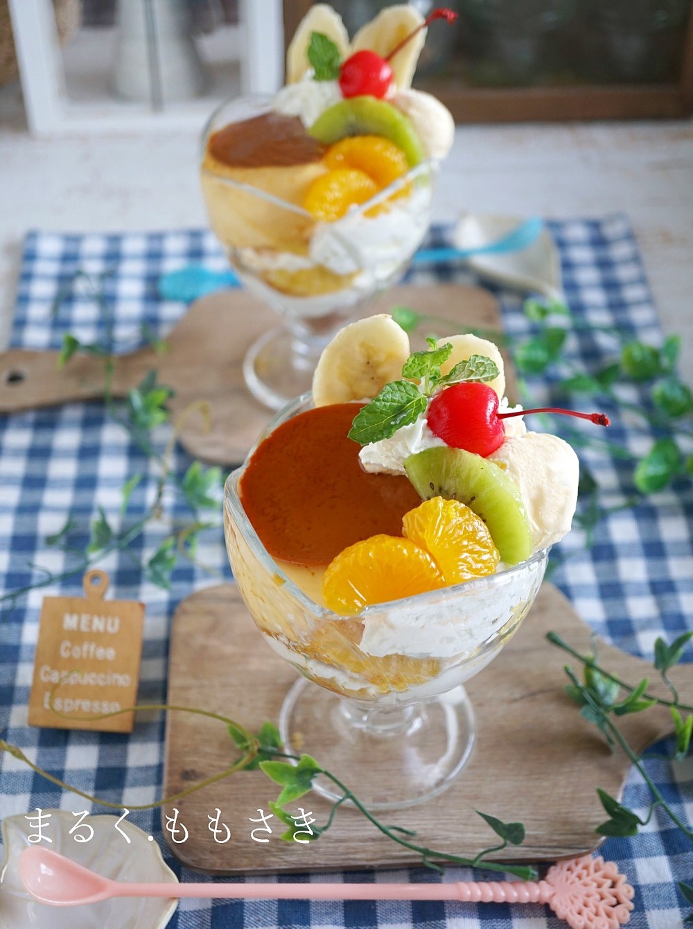 今の映えなどの凄いパフェでは無く、普通のパフェ。それもプリンが乗っているのが作りたいと思っていて数年前からグラスを買っていてやっと作れた。