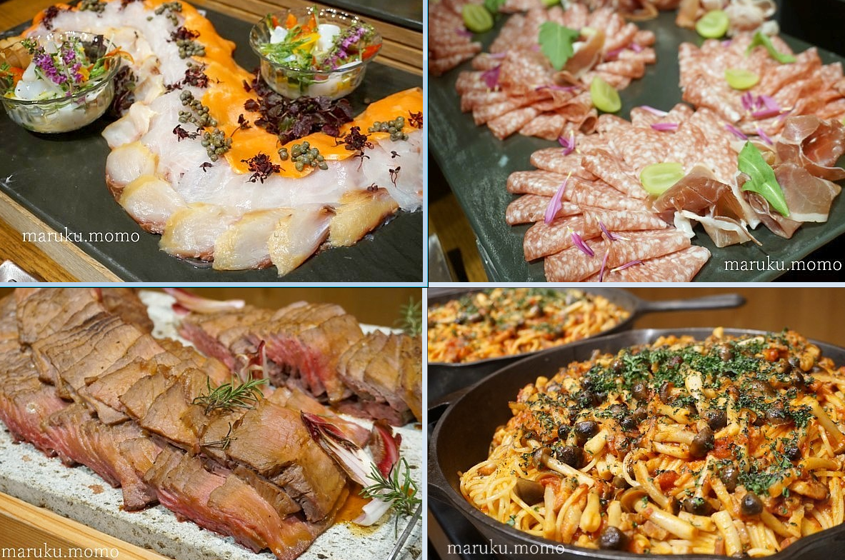 オードブル~カルパッチョやハム系。ローストビーフやパスタ。どれも美味しくって、山のような人をまるで満員電車の中のように押されながら押しながら(笑)ゲッチュー
