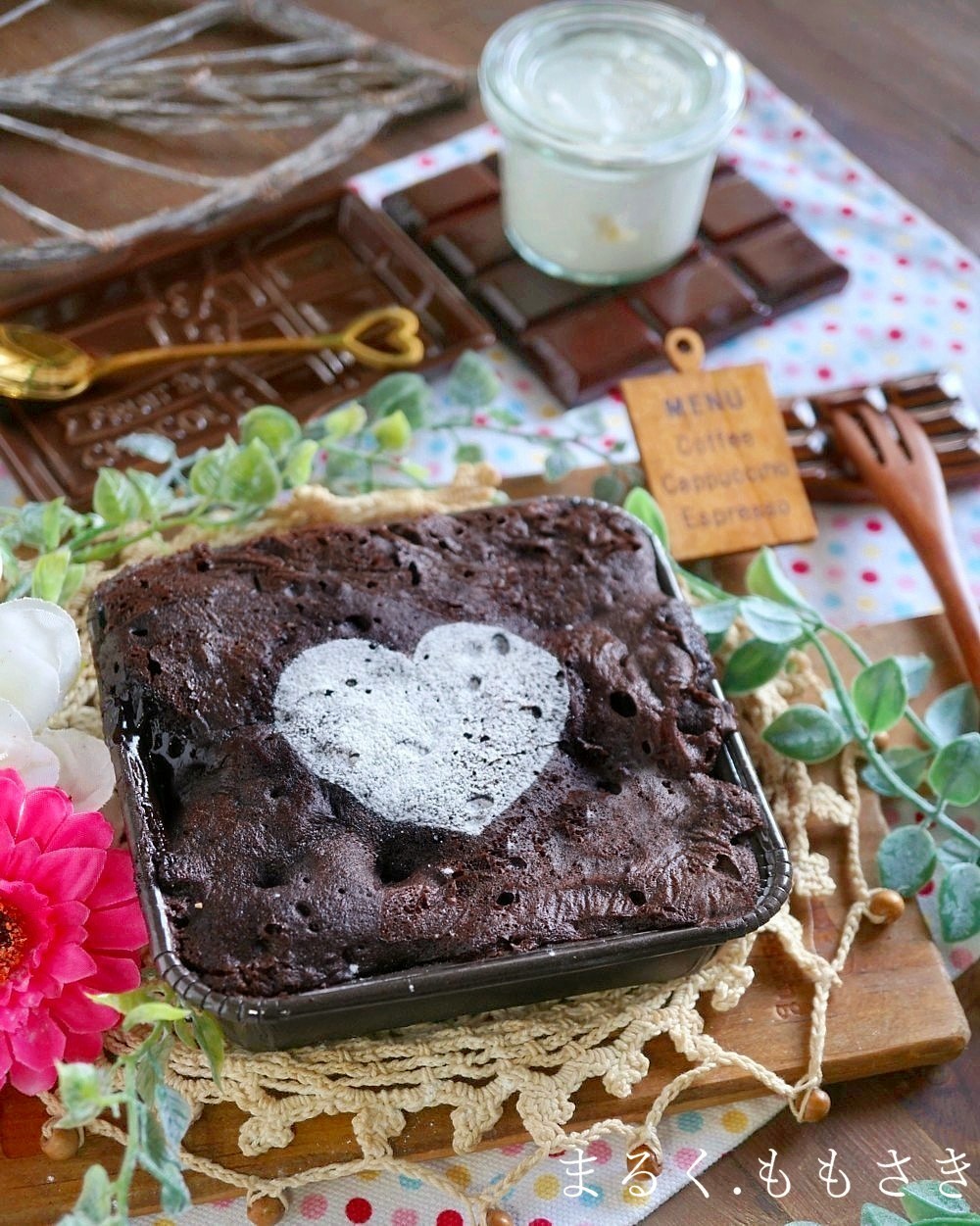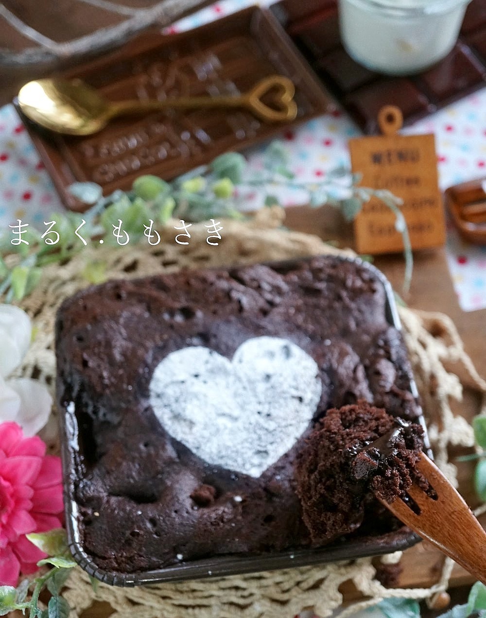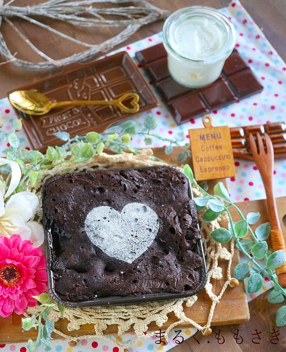 板チョコも余っていたのを刺したら飾りになるかなと?思ったら、それが結局膨らむから沈んでしまったんだけど^^;それはそれで中でとろけてフォンダンショコラ風にもなり、失敗の失敗から出来たものです