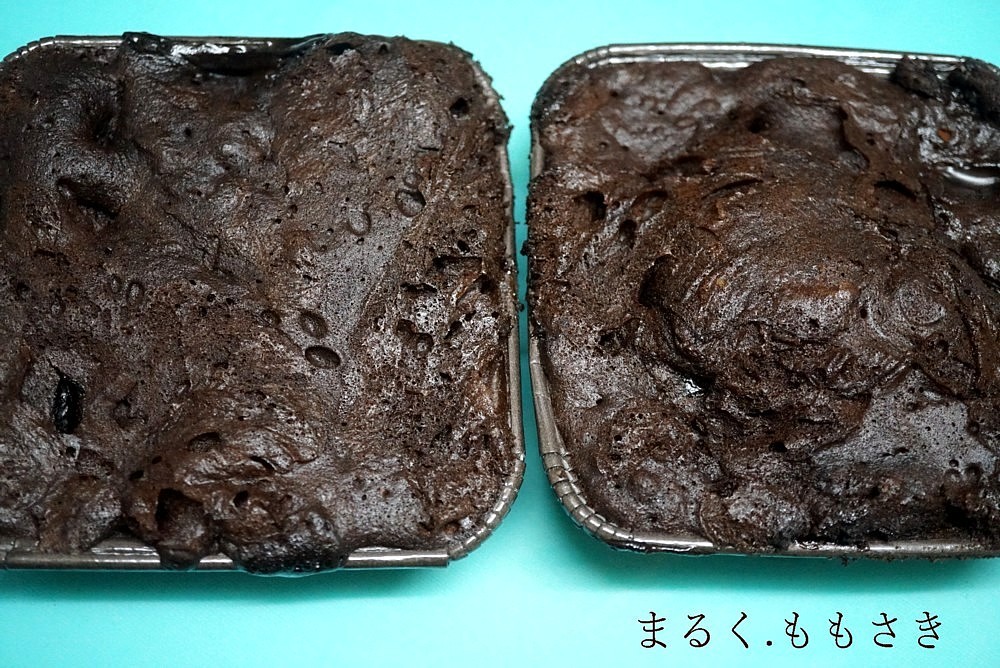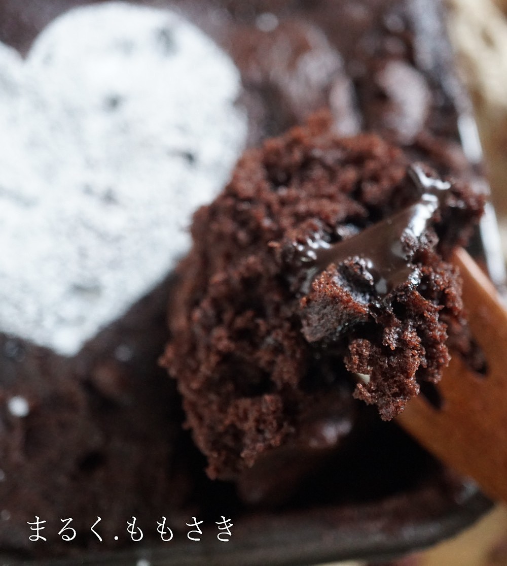 板チョコを3枚にして3倍の量を作るべきか?いやバターも3倍になるとなると勿体ない(←笑)ホットケーキミックス100gを入れ適当にレンジでチンしたら、意外に普通に焼き上がり?余ったチョコを刺したものが中でとろ~りになりいいかも?と思ったんですが生地がもう少し柔らかい方がいい。これでは炊飯器で作ったような硬さだ^^;家族は普通に美味しいと言うけど(普通には嫌だw)と再度粉の量などを変えたら~ばっちり!しっとり柔らかい~濃厚で美味しいと思わず声が出たほど(笑)