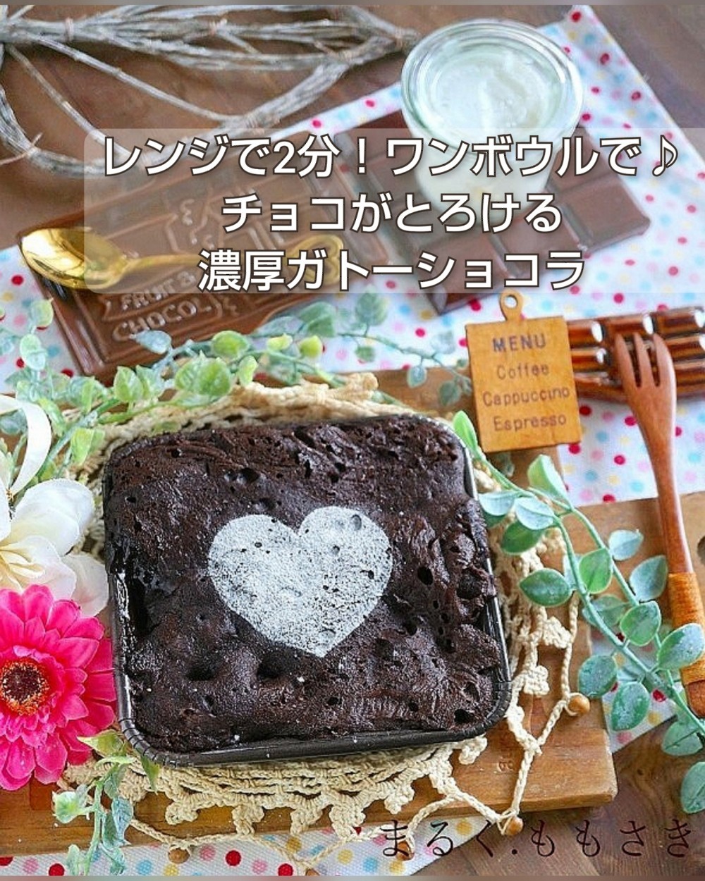 レンジでたった2分で作れるガトーショコラです!レンジで作ったと思えないしっとり濃厚なお味です