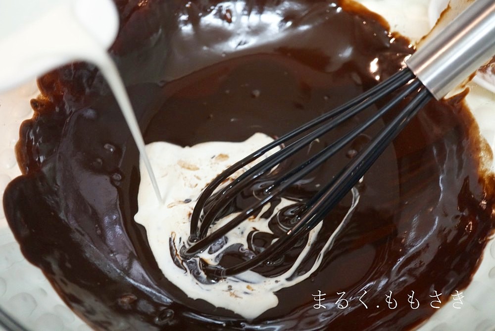 先日出したオーブンで焼くガトーショコラをまた焼こうと、板チョコとバターを溶かし砂糖を入れる時に大さじ2でいいのになぜか50gだと勘違いして投入!