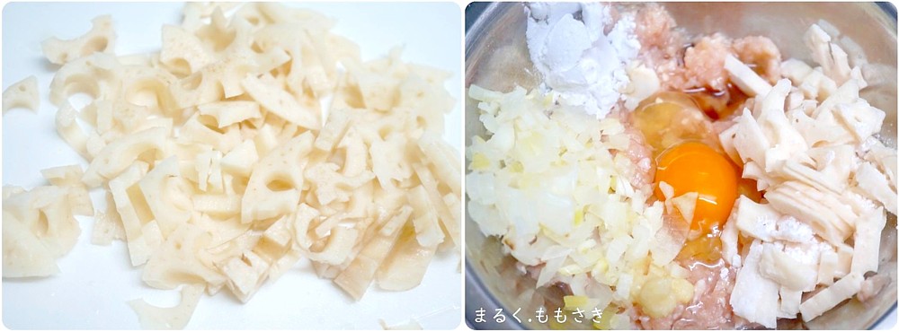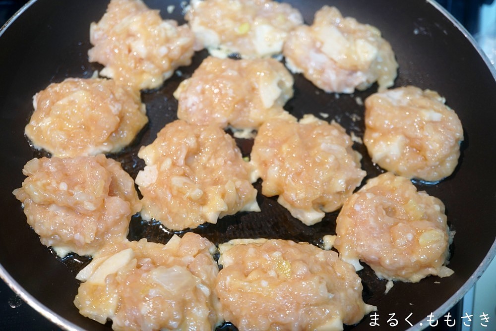 れんこんが少し余った時に、鶏のひき肉に入れつくねにしました♪