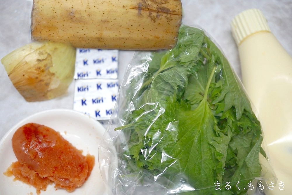 シャキシャキレンコンと瑞々しい新玉ねぎ、クリームチーズのコクに明太マヨのピリッと感!