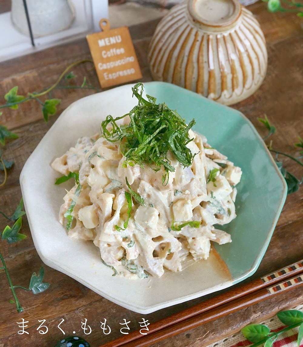 レンコンとクリームチーズの明太マヨサラダです。