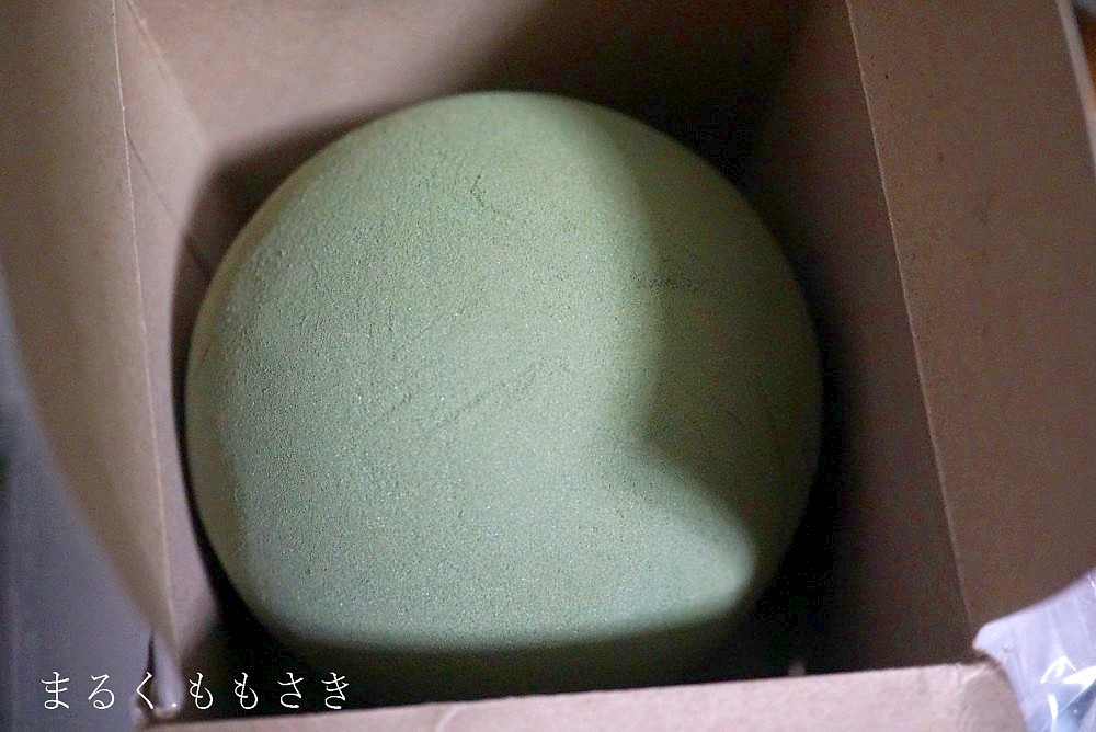 丸くしたものにグリーンを貼ろうかなと思い、粘土を丸める?発泡スチロールを丸く切る?って考えながら歩いていたらこの丸い給水スポンジを見つけラッキー♪(←古いw)中はこんな感じです。初めて見るわ(笑)