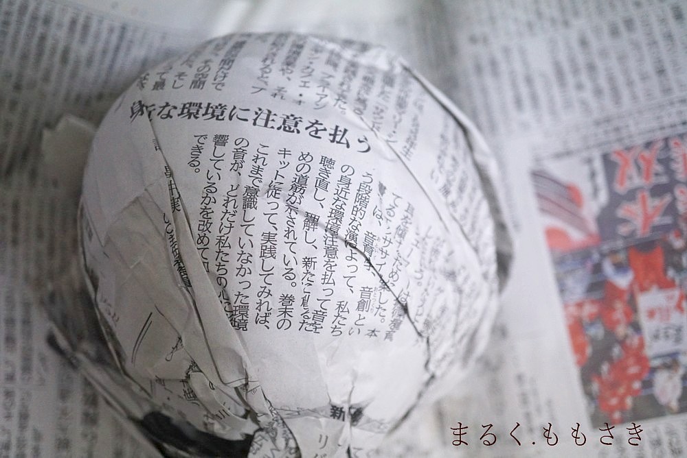 下に敷いた新聞紙で丸め何度もコロコロして、キュキュッと手ですぼめる感じにくっつける。