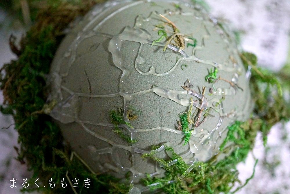 周りにグリーンモスを貼り付ける。このままではふわふわだ^^;