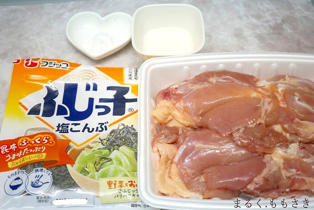 ピッタリ塩昆布が張り付いたチキン、美味そうだ~~(^o^)