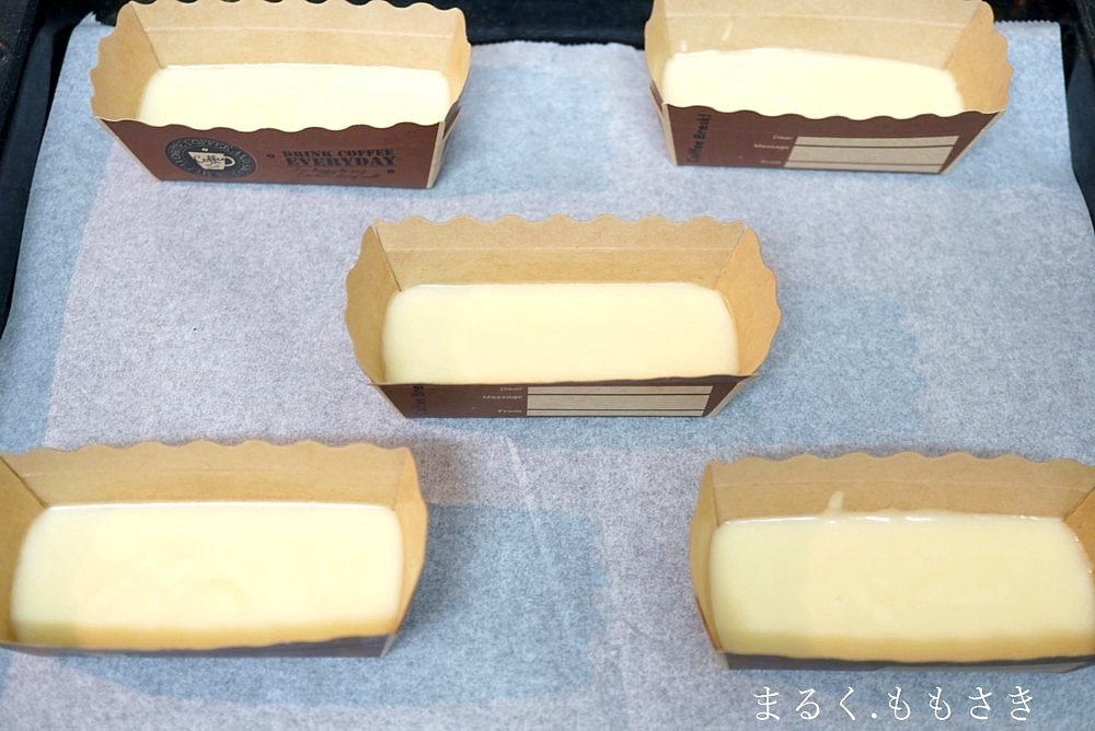左のバターの方は型に油を塗りくっつきを防ぎました。すると少しすき間ができ取りやすかったです。