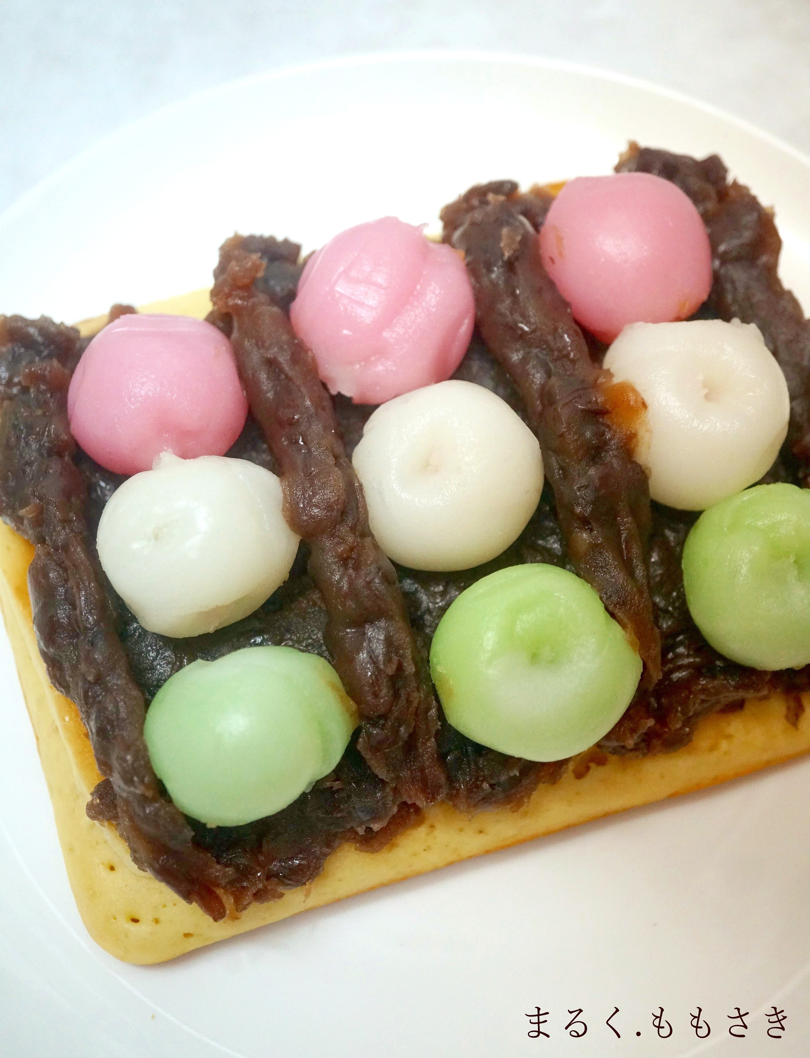 こちらは市販の3色団子と市販のあんことホットケーキミックスを使ってシベリア風に仕上げてみました。生地にみりんを入れ和風に合うものになっています^^