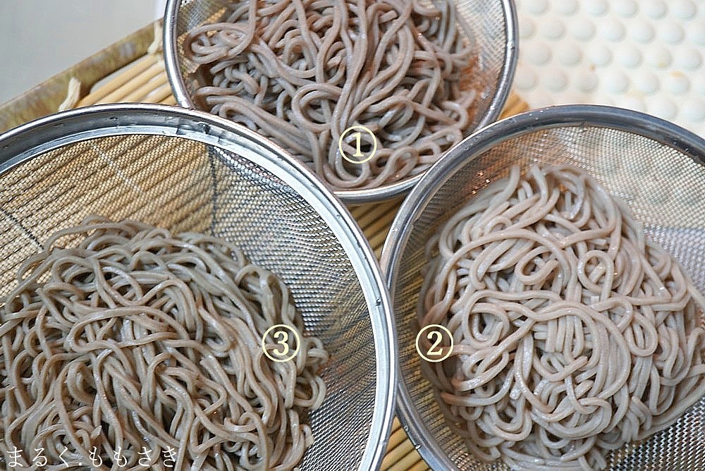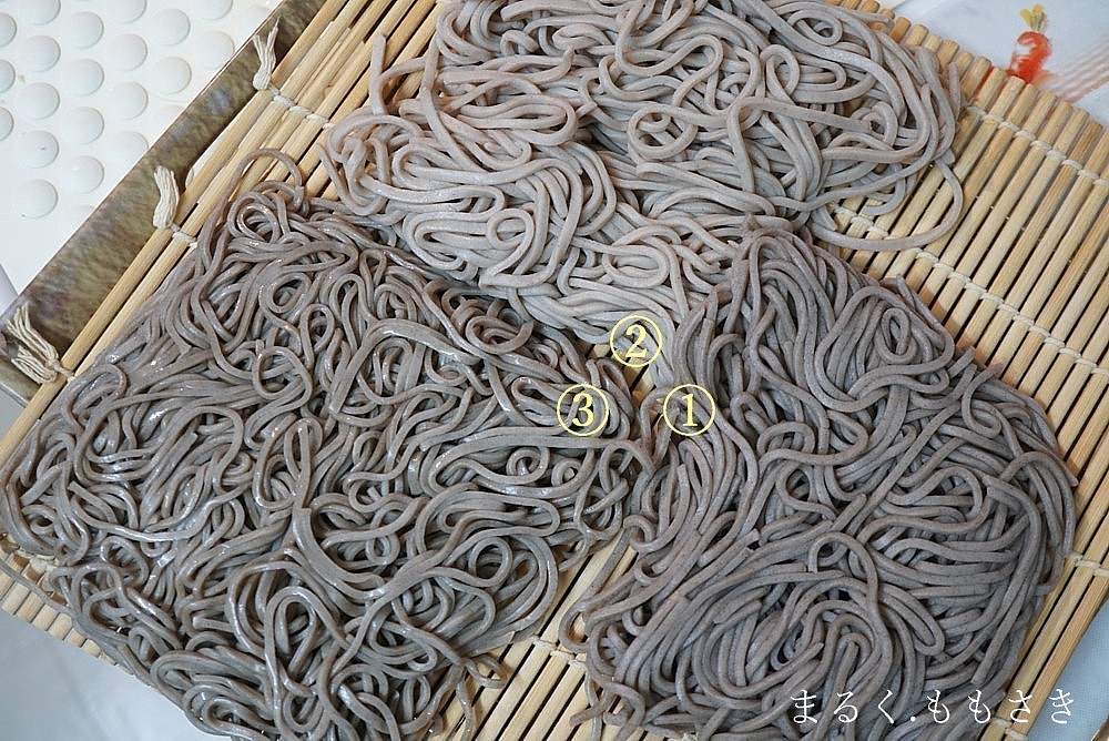 ん?①はお値段が安いのに、色がしっかり黒めでそば粉が多く入ってるように見える。