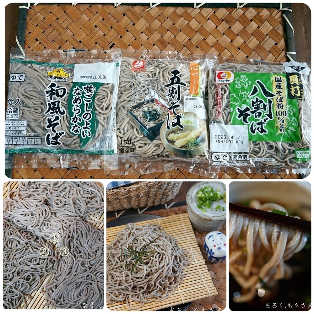先日外食でやっとお蕎麦(ざるそば)を食べた話を書きましたが、火曜市に行った時に袋のお蕎麦の値下げ品を2種類見つけたので食べ比べてみようと写真撮っていたんですが、値下げシールが邪魔で剥がれず^^;もう1度普通の値段のを買ってきました(笑)するともう1種類見つけ3種類をレポしました。