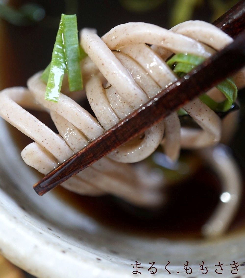 ②5割そばだけど色が白めです。そして太さが1番あります。