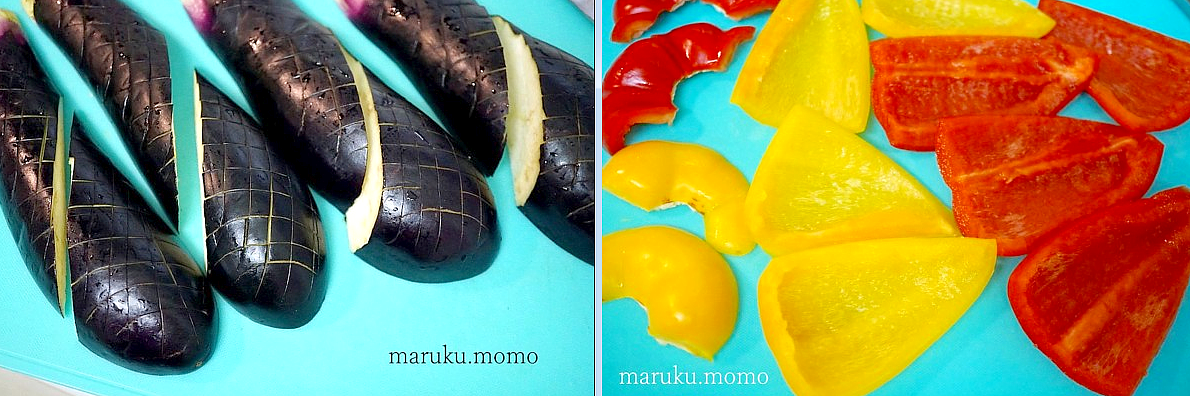 パプリカも赤色と黄色で味が微妙に違うので、また彩も良くなるので2色使いました。甘くて美味しいですね