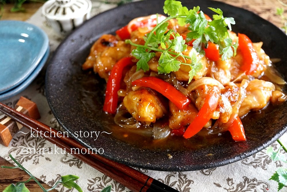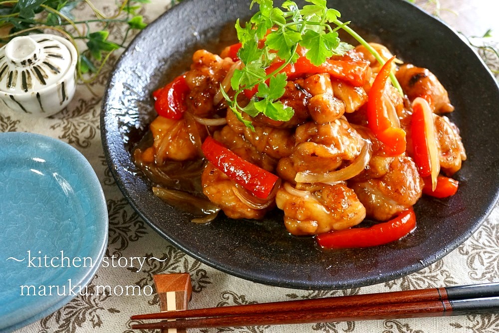いつも酢豚の素で作りますが、黒酢(ミツカン使用)を最近使っていなかったなと、チキンをそれで炒めてみたらまるで酢豚のような味になりました。鶏もも肉で作ったので酢鶏ですが(笑)