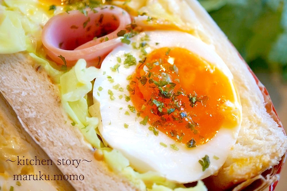 噛んだら半熟たまごの黄身がとろ~りと濃厚でパンに絡まり白身も柔らかくって美味しいですね