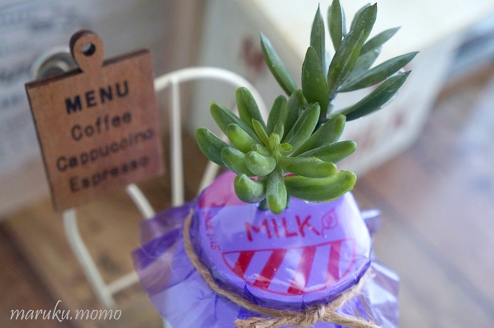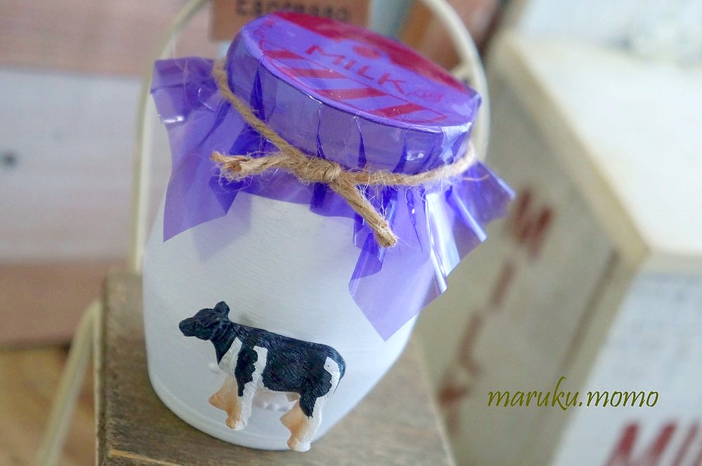 牛さんのミニチュアを使いたくって牛乳瓶に仕上げました♬