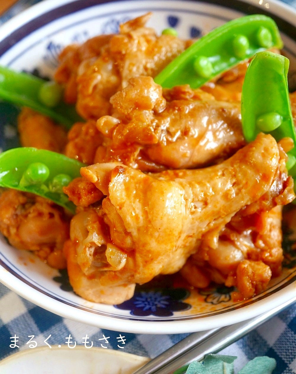 手羽元、ケチャップも入れて煮込んだのは食べたこと無いです。