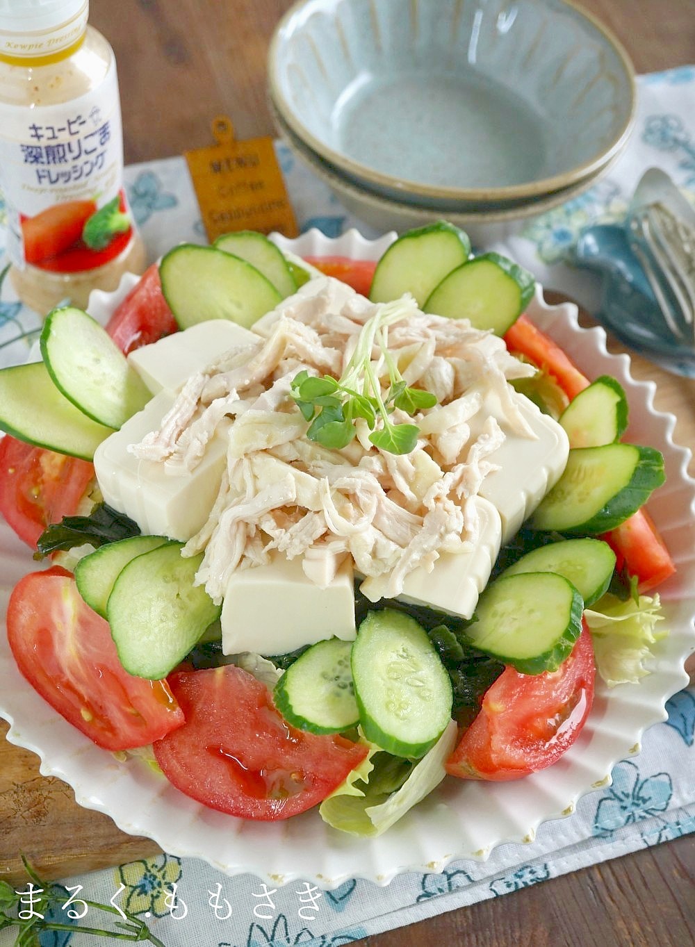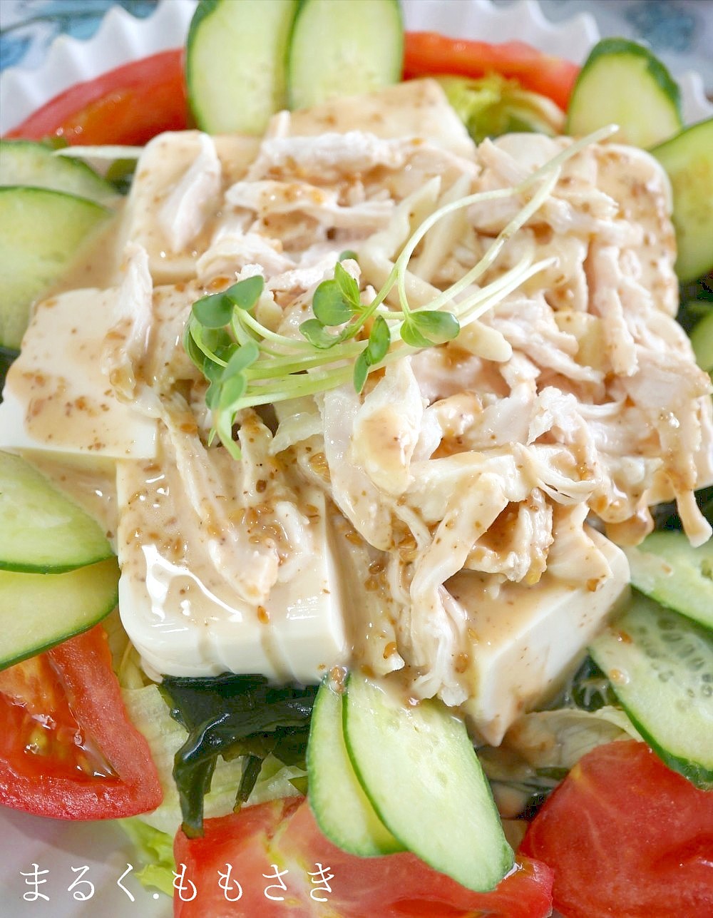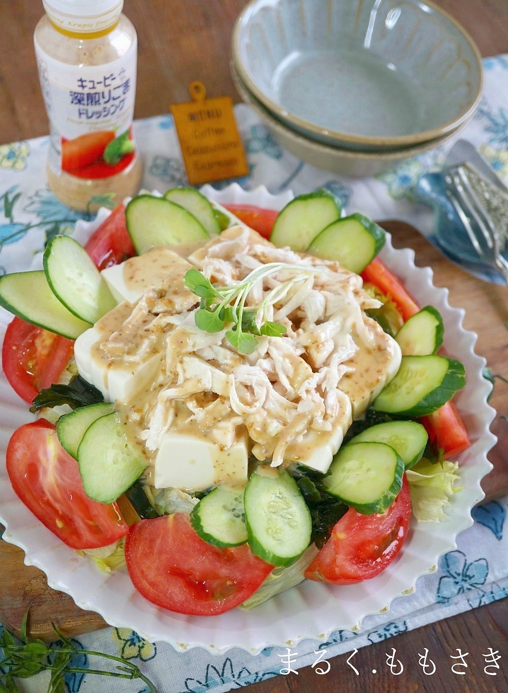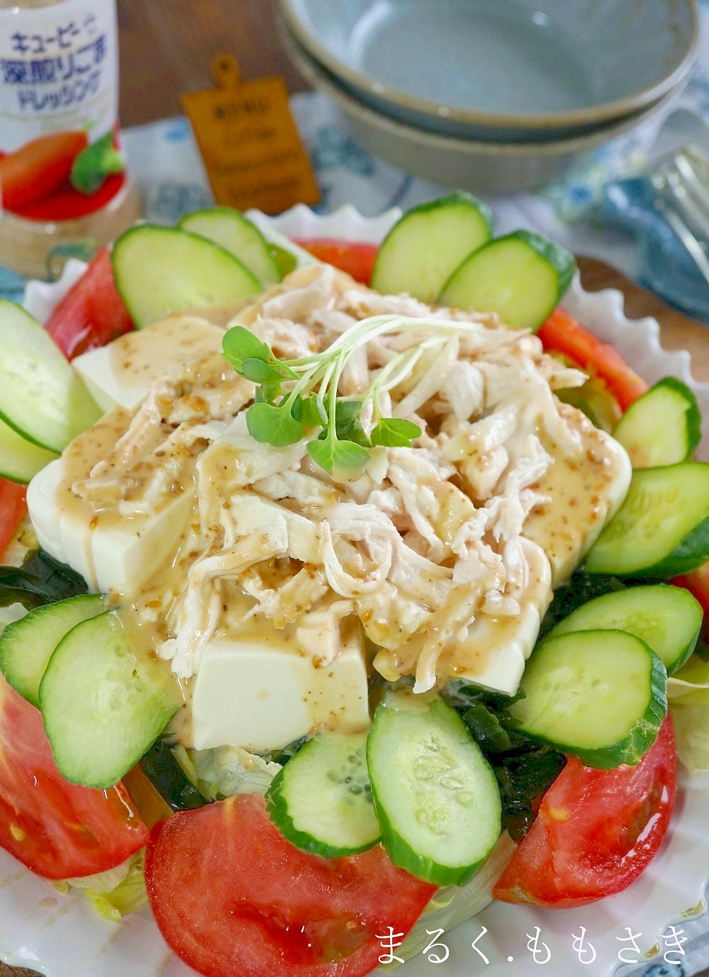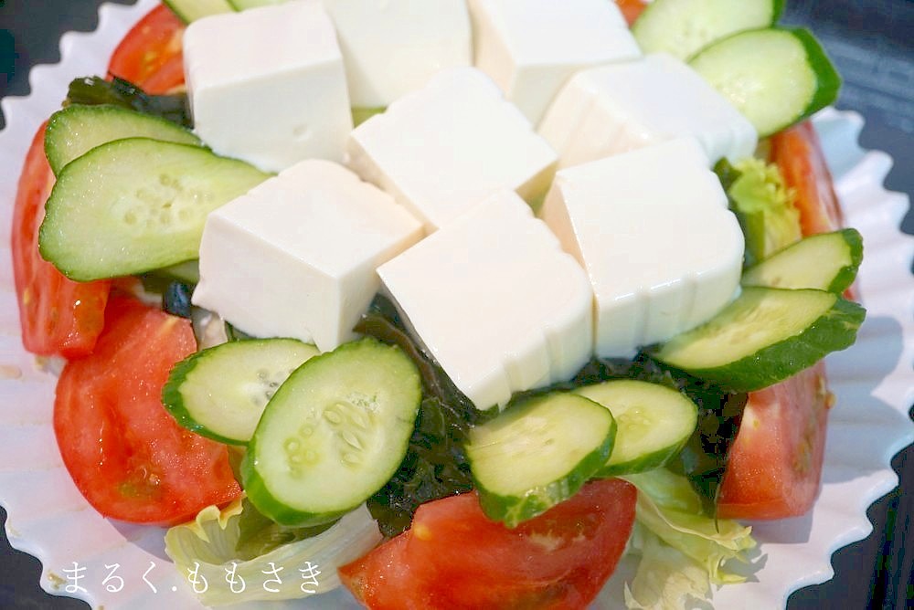 淡白なお豆腐がごまドレッシングで濃厚になります