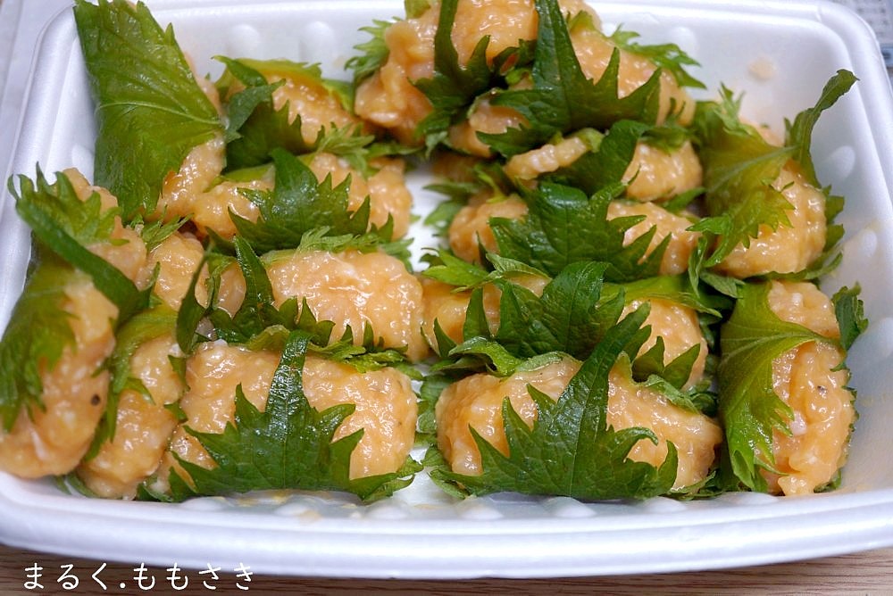 大葉鶏つくね…私でも作れそう。それに大葉が100枚で百円!
