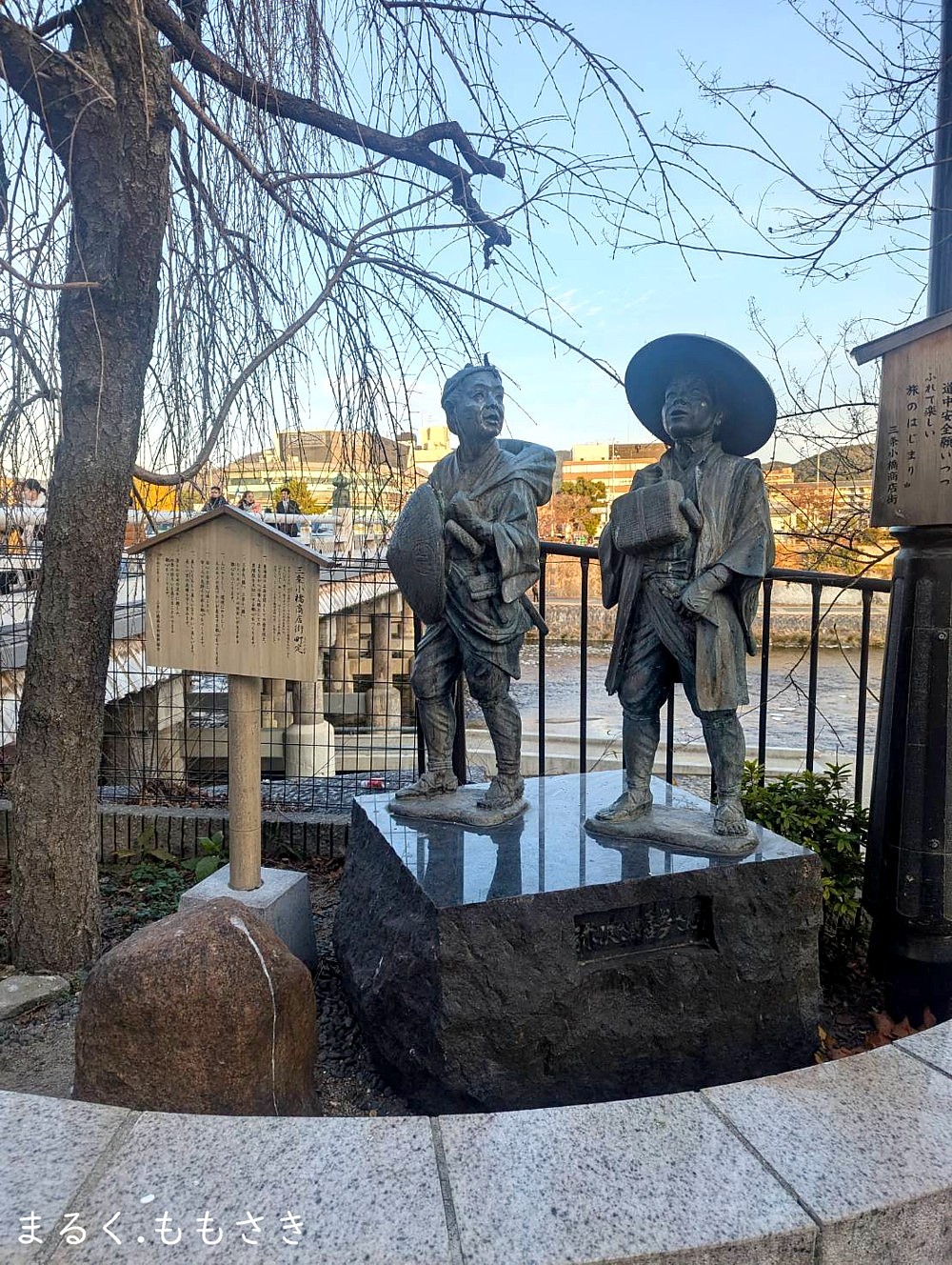 主人公の弥次郎兵衛と喜多八は仕事を解雇されたり奥さんが亡くなられたりと不運続きだったが二人が出会い江戸から大阪までの旅を面白おかしく描いた作品ですが、江戸時代の東海道旅行の実状を記録する貴重な作品ですね。その二人の銅像が三条京阪前の橋を渡った所にあります^^京都って歩くだけでも面白いですよ^^