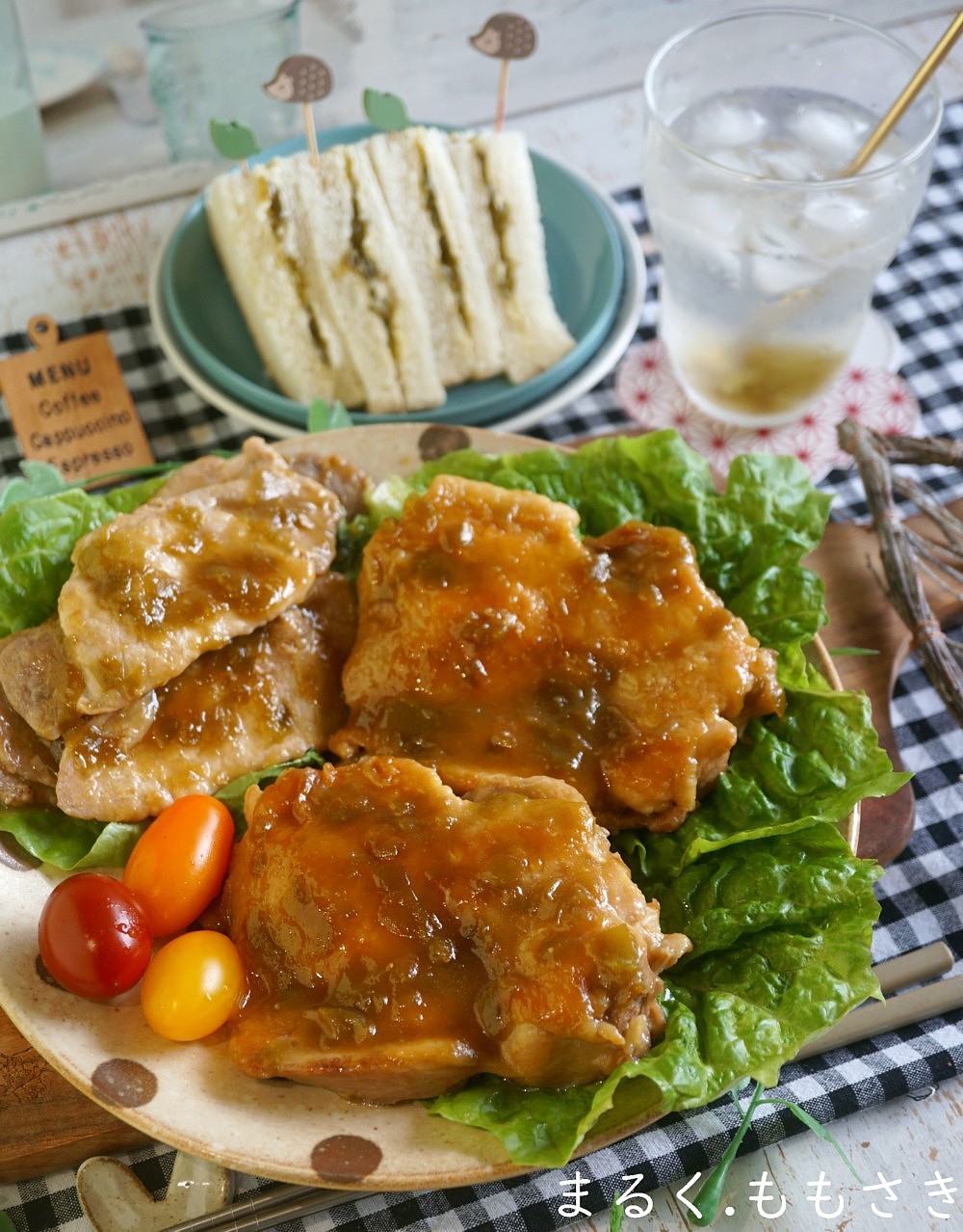 ジャムを使ってこれまた簡単なチキンソテーと豚肉ソテーとサンドイッチにしました。
