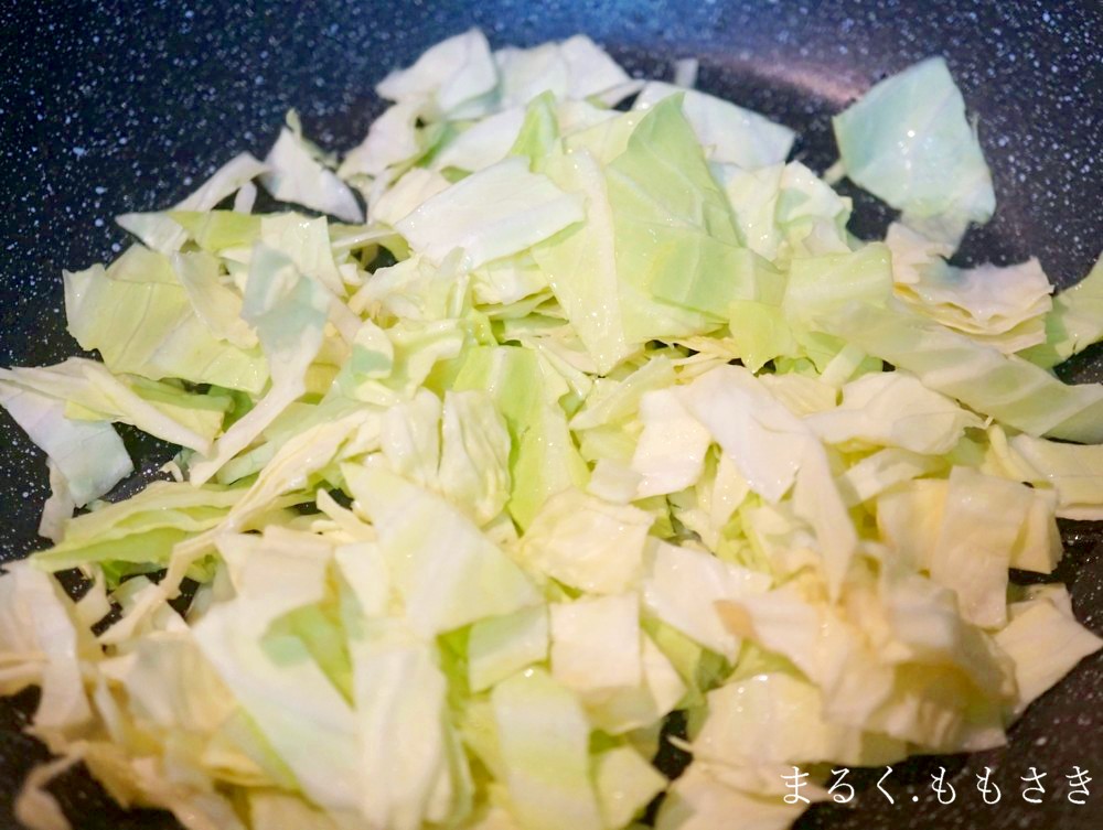 キャベツと一緒に炒めて、